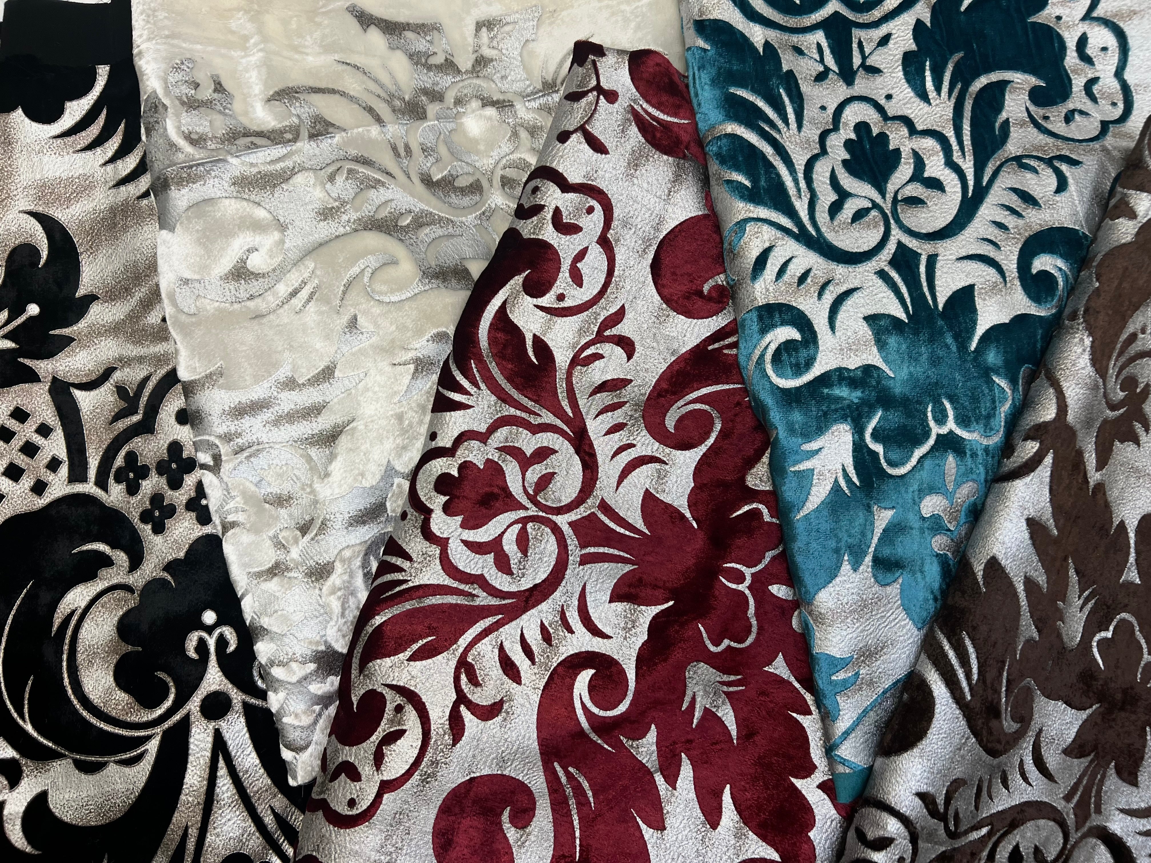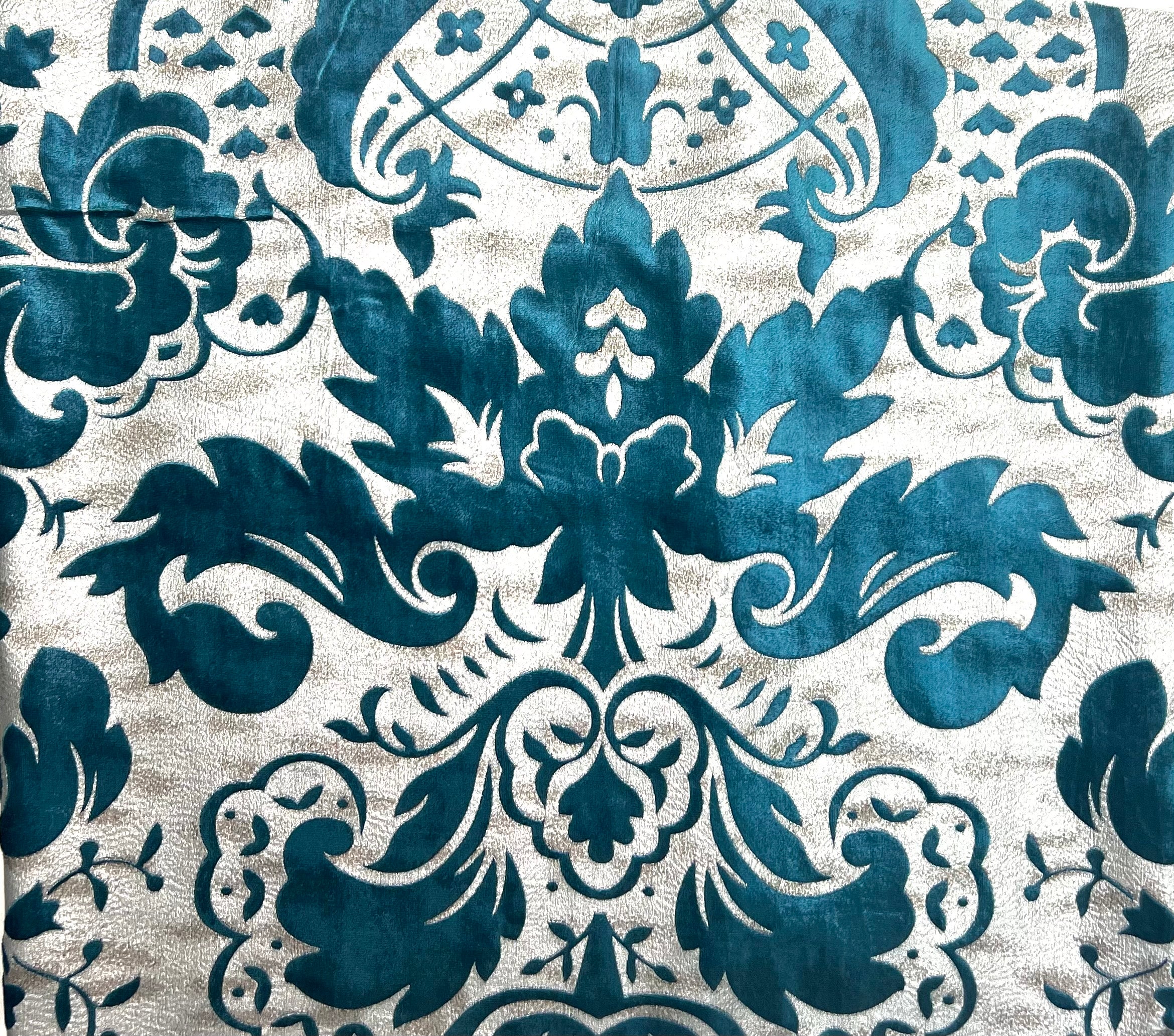 This limited edition damask pattern full silk Verona Collection is perfect for drapery, pillows, comforters, and tops on the table.