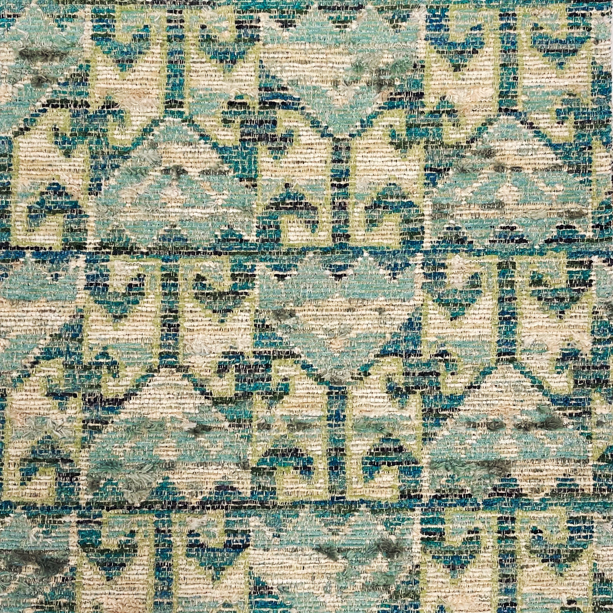 Bazaar is a geometric jacquard based on an antique Turkish textile garment. This midscale design is woven with eyelash and spacedye yarns offering multicolor, dimension and texture.