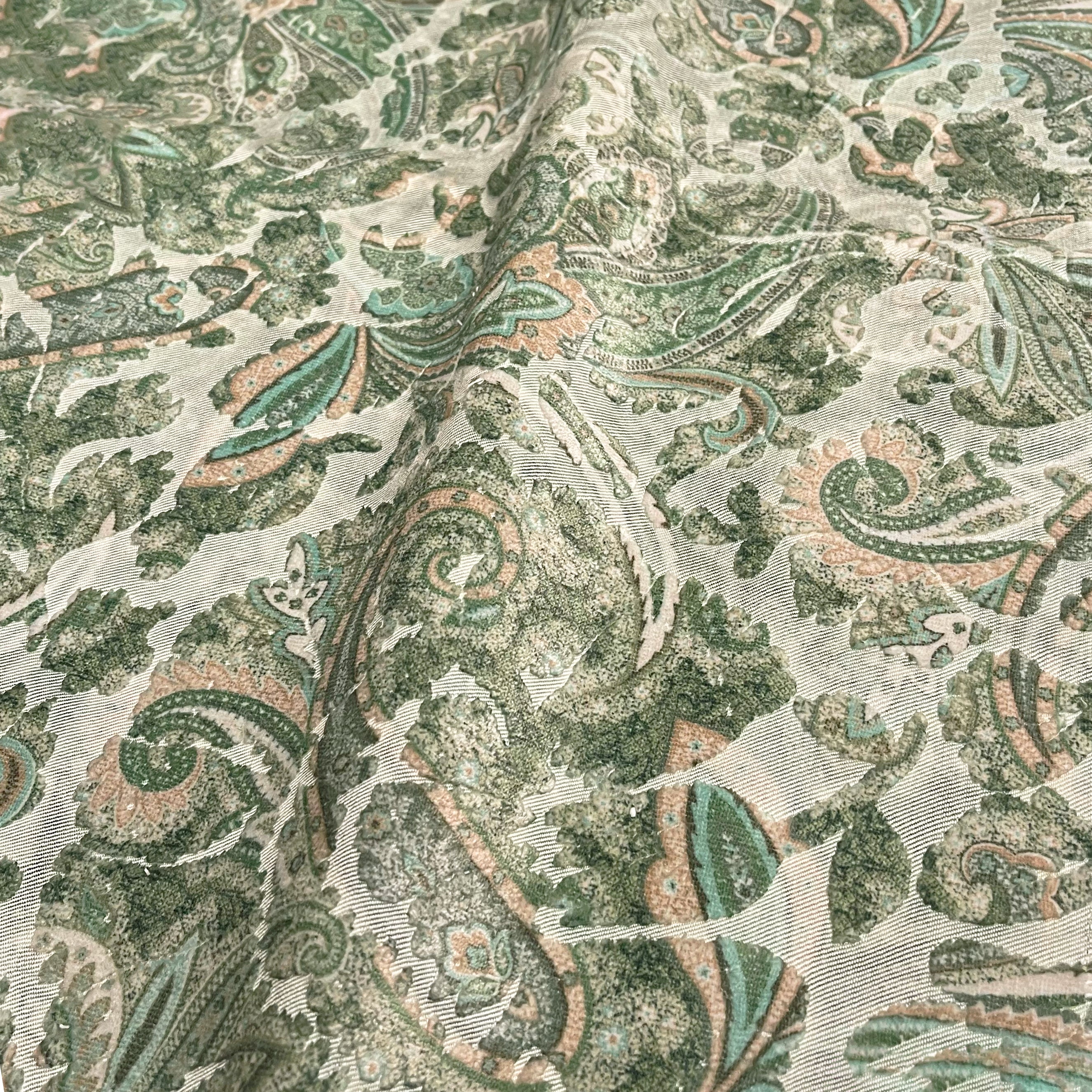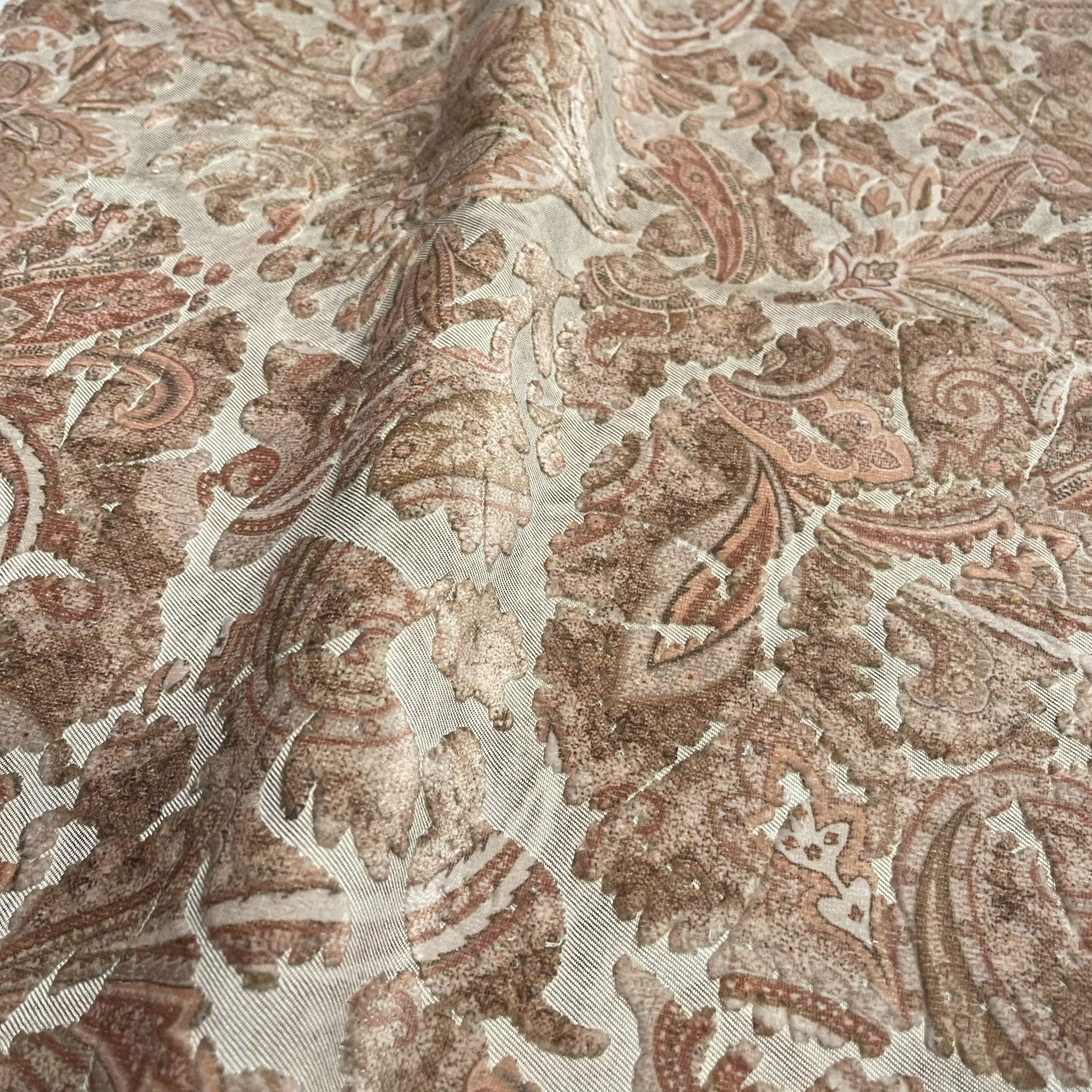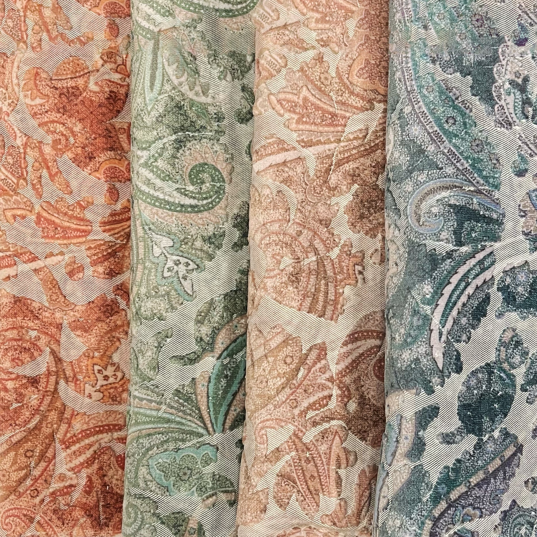 Florian is a paisley printed cut velvet in tonal colorations. The dry feel of the floral base gives a casual feel to this transitional design.