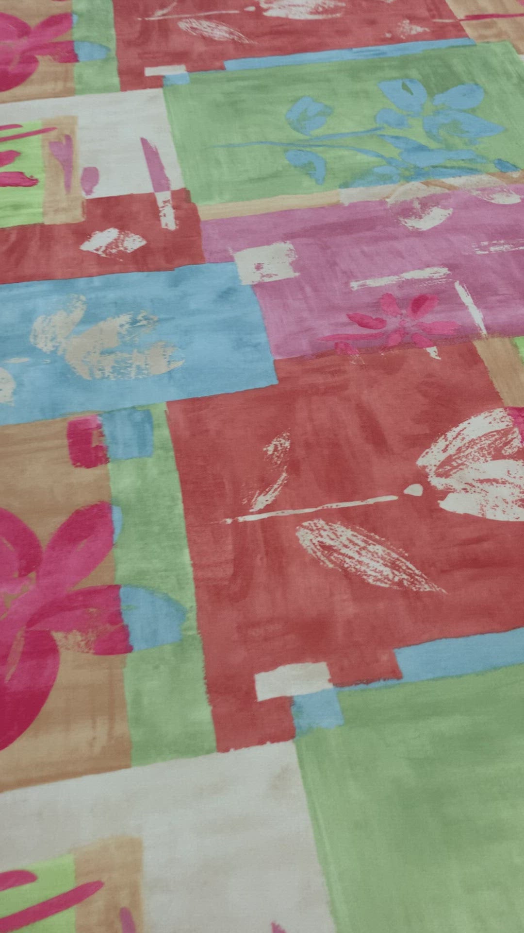 Malasana Upholstery Fabric - A collage pattern printed on the fabric. The fabric has a backing.